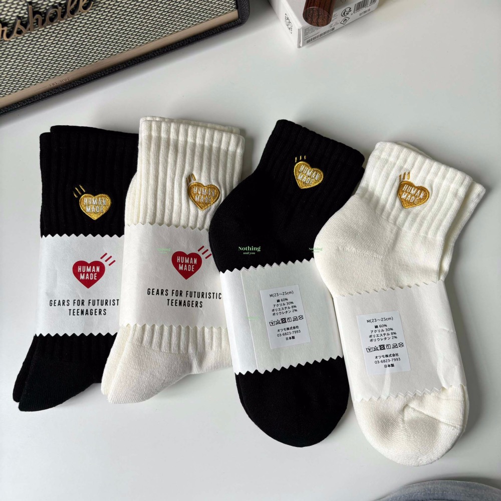 HUMAN MADE PILE SOCKS SHORT PILE SOCKS 金色愛心 橘色愛心 刺繡 長襪 中筒襪