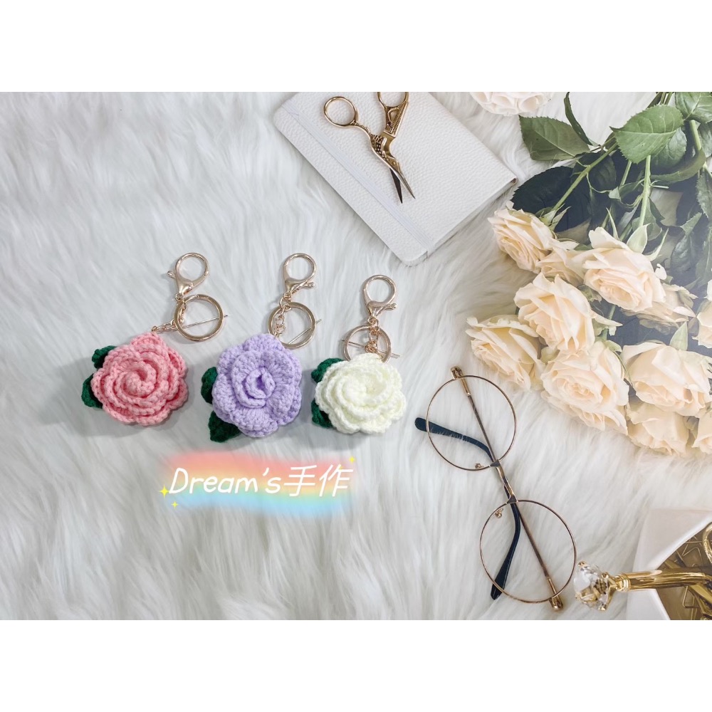 💖Dream’s 手作💖山茶花小香風毛線編織吊飾,幸運吊飾、手機吊飾、鑰匙圈吊飾、婚禮小物