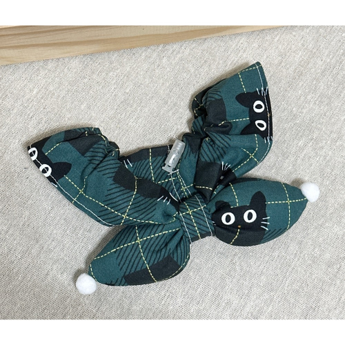 《葉葉領圍兜》-格紋黑貓(綠)寵物領巾