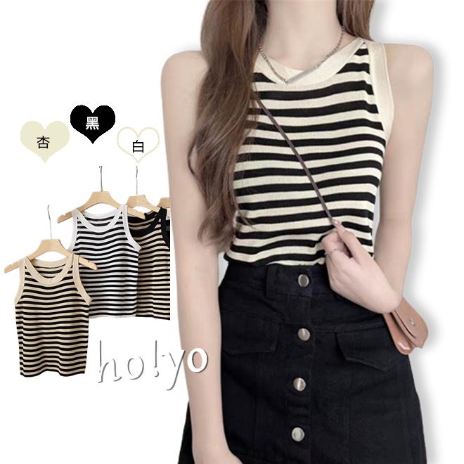 台灣現貨🇹🇼韓系親膚彈力 微削肩橫條針織背心 削肩背心 性感顯胸 條紋背心 穿搭 背心女 無袖上衣 無袖背心 女裝 上衣