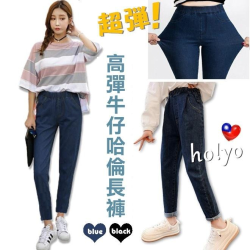自訂🇹🇼高腰顯瘦超彈力 牛仔長褲 中大尺碼 牛仔褲 百搭 哈倫褲 男友褲 鬆緊長褲 寬鬆長褲 工作褲 休閒褲 休閒長褲