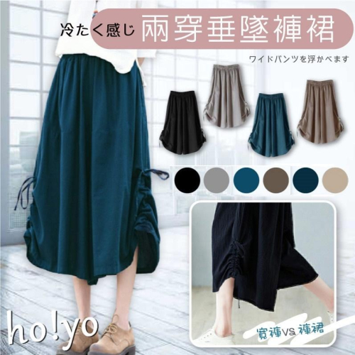 爆賣🇹🇼日系兩穿 垂墜褲裙 口袋寬褲 瑜伽長褲 闊腿褲 涼感褲八分褲 大尺碼褲子 瑜珈褲 大裙襬 休閒長褲 休閒褲 女裝