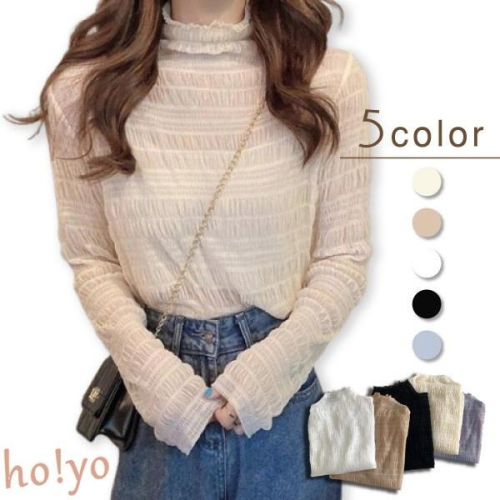 包色🇹🇼 韓系高領 蕾絲上衣 親膚彈性內搭衣 外穿 內搭 打底衫 蕾絲內搭 性感 長袖上衣 網紗上衣 蕾絲透膚 內搭上衣