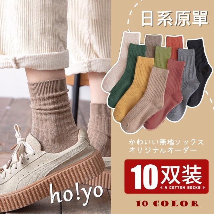 日系原單超值組🇹🇼10雙入 莫蘭迪 素色襪子 中筒襪 襪子 堆堆襪 短襪 棉襪可愛襪 糖果襪 百搭潮襪 學院 韓版 素襪