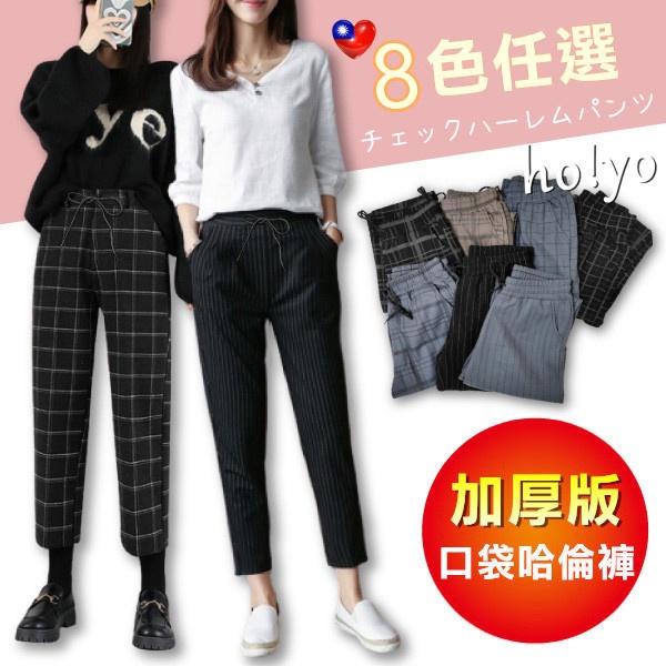 搶手🇹🇼 中厚抗皺 日系 哈倫褲 英倫風 格子褲 老爺褲 褲子老爹褲 高腰寬褲 秋冬長褲女 休閒褲 休閒長褲 冬天褲子