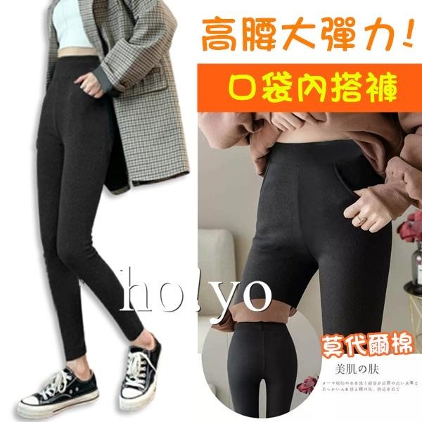 台灣現貨🇹🇼高腰大尺碼 莫代爾 口袋內搭褲 超彈力顯瘦 內搭褲女 打底褲 黑褲休閒 長褲 運動褲 褲子 緊身褲 瑜伽褲