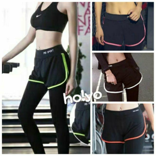 【台灣現貨】💋6色 速乾吸濕排汗 涼感 假兩件 瑜珈褲 韻律褲 運動褲 女生 休閒褲 排汗褲 彈力 瑜伽褲 收腹褲
