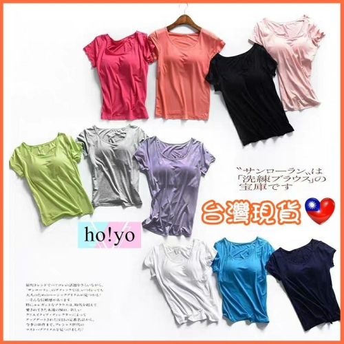 台灣出貨 免穿內衣 超彈 莫代爾 罩杯上衣 罩杯睡衣 無鋼圈 BRA上衣 短袖T恤 素T 內睡衣 睡衣 胸墊T恤