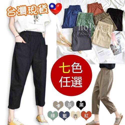 7色 熱銷款🇹🇼 寬鬆 百搭 顯瘦 哈倫褲 口袋 老爺褲 闊腿褲 棉麻長褲女 休閒褲 鬆緊帶 寬褲 蘿蔔褲 工裝褲