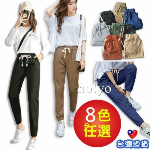 台灣現貨🇹🇼束口褲 鬆緊帶 綁繩 棉麻 縮口褲 哈倫褲 九分褲 亞麻 長褲 女 休閒長褲 休閒褲 棉麻褲 寬鬆 寬褲