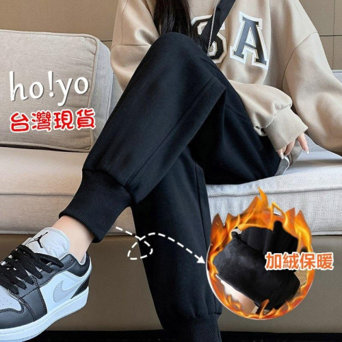 台灣現貨 高腰鬆緊 加厚加絨 休閒褲 保暖褲 束口褲 運動褲 刷毛褲 休閒長褲 暖暖褲 加絨長褲 冬天褲子 工作褲