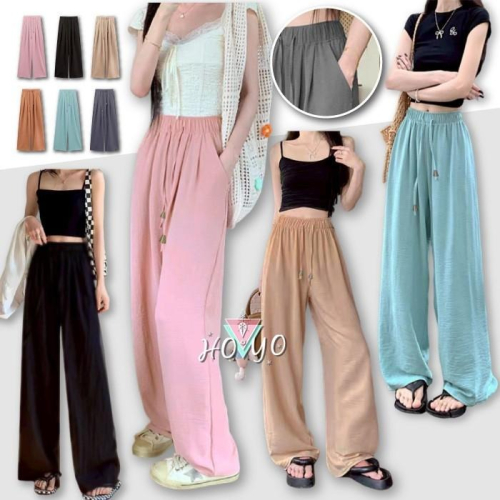 現貨🇹🇼韓系涼感薄款水波紋 口袋寬褲 直筒褲 闊腿褲 裝飾綁帶 寬鬆長褲 休閒褲落地褲 高腰寬褲 A字寬褲 寬褲女