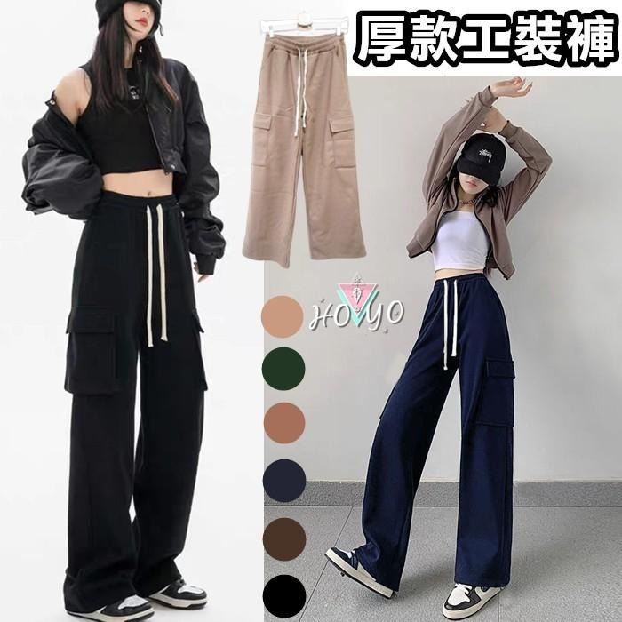 7色任選🇹🇼顯瘦中厚挺版 鬆緊高腰 工裝褲 寬褲 工作褲 直筒褲 闊腿褲 休閒褲 休閒長褲 落地褲 長褲 褲子