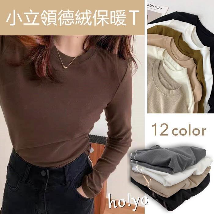 多色任選🌈加厚保暖小立領 半高領雙面德絨上衣 彈性落肩 長袖上衣 磨毛上衣 刷毛上衣 保暖衣 打底衫冬天上衣 圓長袖T恤