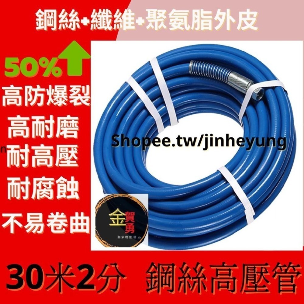 24 H快速出貨 台灣賣家 品質服務有保障 30米鋼絲高壓管 噴塗高壓管 耐壓3300PSI 無氣噴漆機 無氣噴漆機配件 2分高壓管