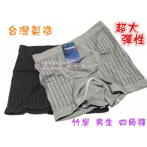 【台灣製造】竹炭纖維 男生 四角褲  此款四角內褲超大彈性  腰部特殊編織  ↬ 不會有鬆緊帶勒住的束縛感 個人或長輩 ↬ 腰部不想要有束縛感的 可選此款  材質  ↬ 柔軟 、 舒適 、 又好穿 品質跟一般四角內褲就是不一樣! 一般尺寸  ↬ 25 ~36 腰皆可穿  加大尺寸  ↬ 可穿至42腰 褲長 ↬ 約31公分 材質 ↬ 竹炭纖維43% / 尼龍纖維43% / 彈性纖維14%