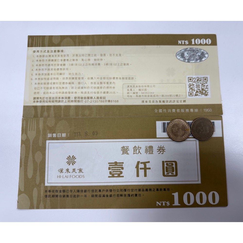 漢來美食 餐飲禮券