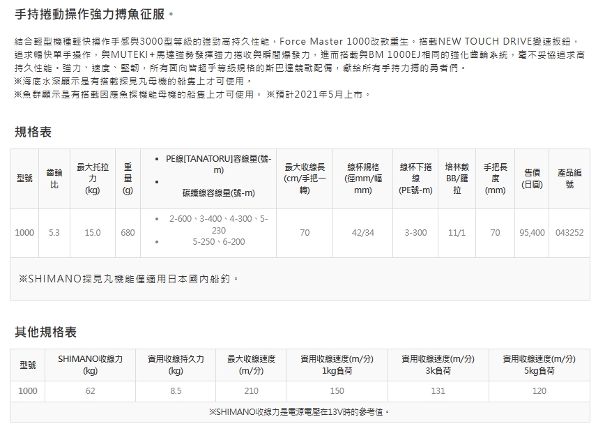 結合輕型機種輕快操作手感與3000型等級的強勁高持久性能,Force Master 1000改款重生。搭載NEW TOUCH