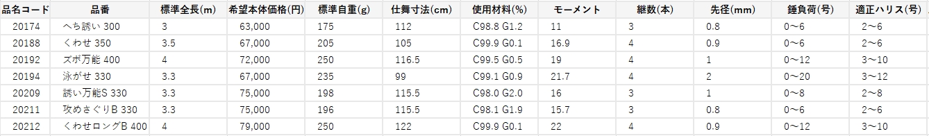 為掌握海釣池而專門針對每種釣魚方法的 4 種型號的陣容。