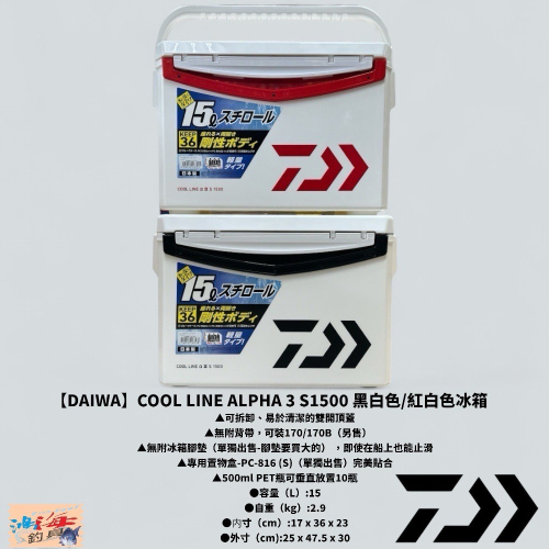 中壢鴻海釣具 【DAIWA】 COOL LINE ALPHA 3 S1500 紅白色/黑色冰箱 露營 釣魚 另售釣武者貼