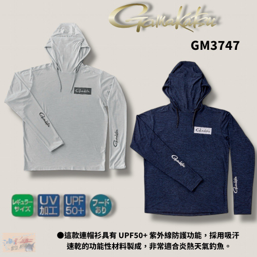 ●這款連帽衫具有 UPF50+ 紫外線防護功能,採用吸汗速乾的功能性材料製成,非常適合炎熱天氣釣魚。大風帽與面罩一體化設計。