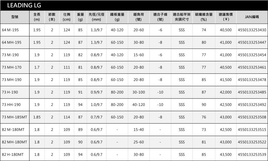 產品規格豐富,你可以在眾多型號中找到符合你釣法的規格!