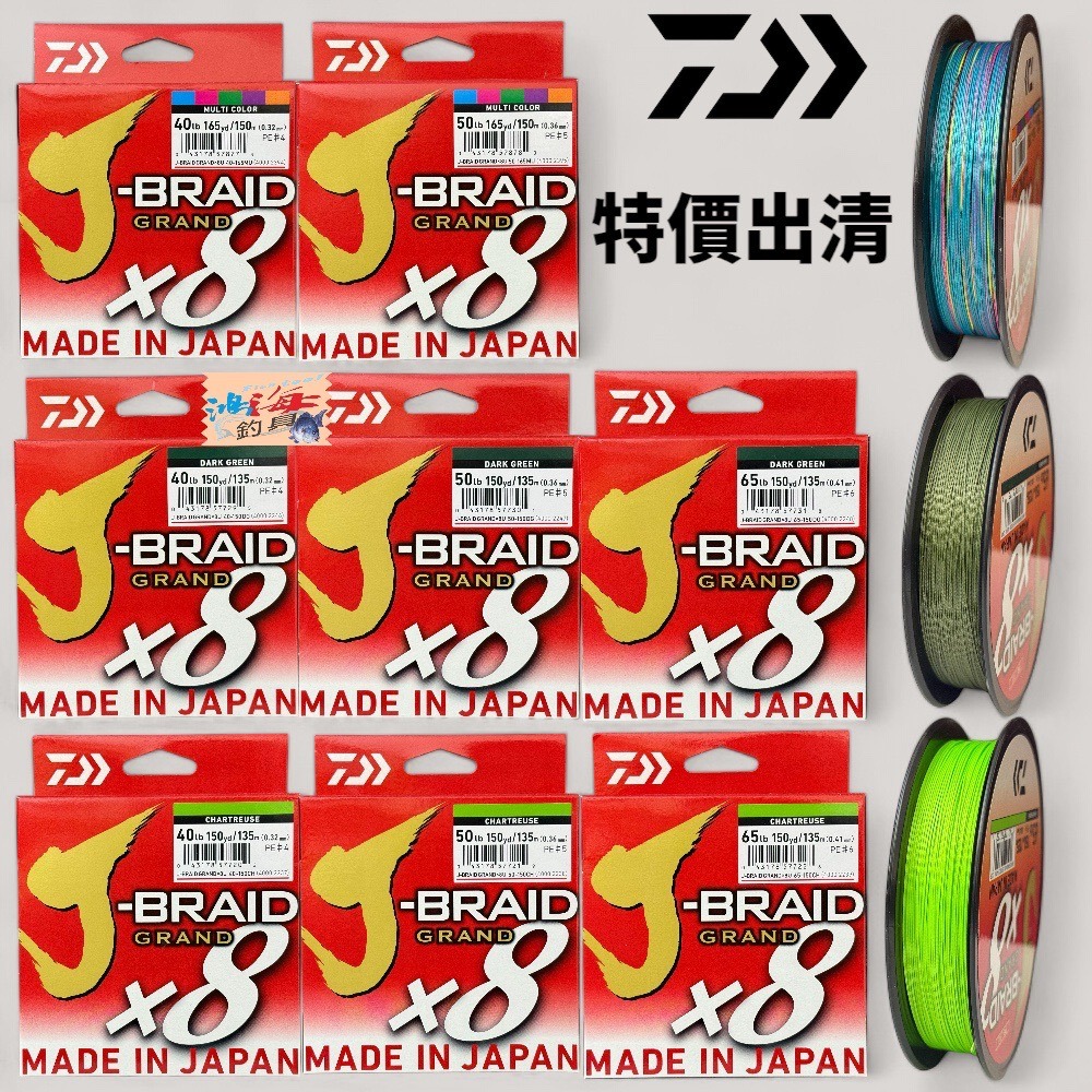 紅海釣具企業社【DAIWA】J-BRAID GRAND8A 150YD/135M 8股PE線 特價出清