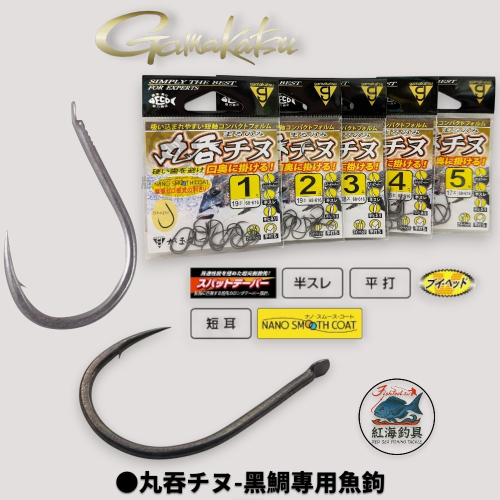 Gamakatsu(伽瑪卡茲)生產的丸呑チヌ(Maru-Nu Chinu)系列釣鉤,專門設計用於釣黑鯛(チヌ)。