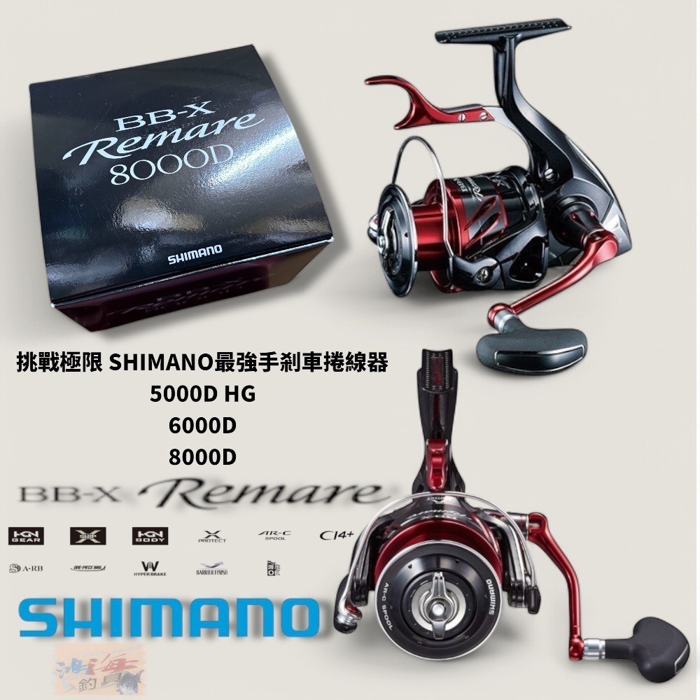 羅拉部採用X-PROTECT防撥水構造,實現高防水性能;剎車手把充滿力度的流線型設計與升級,提供豐富款式適用各種釣線號數與容線量實現長線放流釣法;手把轉一圈可收回104cm,