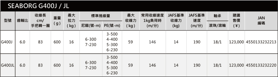 ●標準纏繞線量 PE (數量m): 3-500_4-400_5-300_6-230