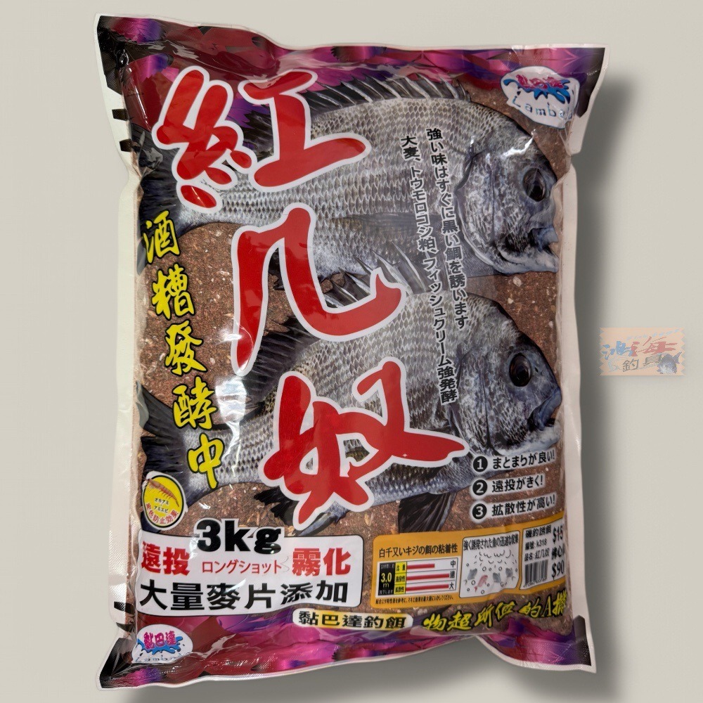 紅海釣具企業社【黏巴達】 K318 紅几奴 磯釣誘餌粉3KG