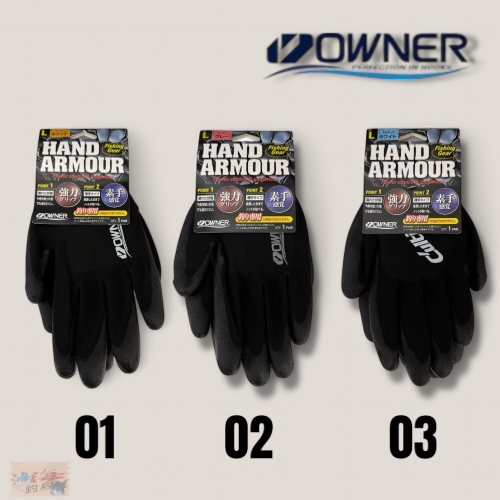 中壢鴻海釣具【OWNER】HAND ARMOUR L號 釣魚手套 防滑手套