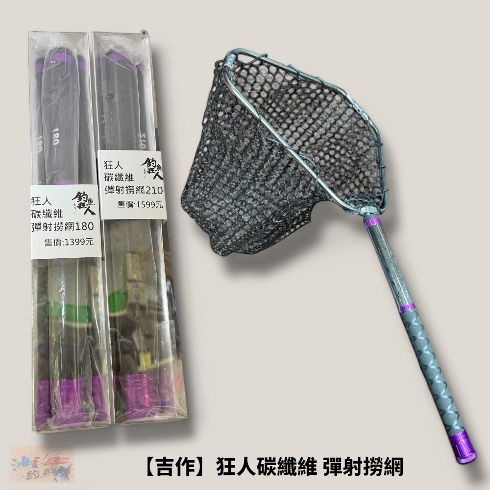 中壢鴻海釣具【吉作】狂人碳纖維 彈射撈網 180 210