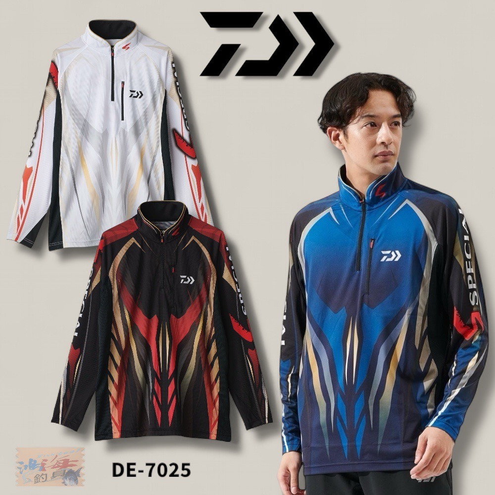 中壢鴻海釣具【DAIWA】 DE-7025 SPECIAL 半拉鍊釣魚長袖衣 [25年款] 防曬長袖衫 長袖釣魚衣