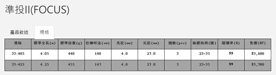 延續了準投一代的優越特性,輪座改為富士DPS轉座,使用遠投專用導環,全新的TOARY碳布捲製,所以在調性跟強度上提升控制的穩定度,讓您在拋投時的發力能比一代更準確將釣組送到標點,可以實現遠距離投擲,提高控制力,有效減少投錯標點的狀況,因為在國內遠投會遇到的魚種很多,除了沙鮶魚是遠投主要目標之外,在砂質地形也常常會遇到黑鯛、赤翅仔、花身雞魚、甚至是中大型、紅古、南方瓜仔、紅沙...等等都是沙質地形常客,準投二代在強度表現上,絕對可以應付這些中大型魚種,我們也保有一代405、425的兩款規格,讓您再依自己手感來選擇所需的竿子。