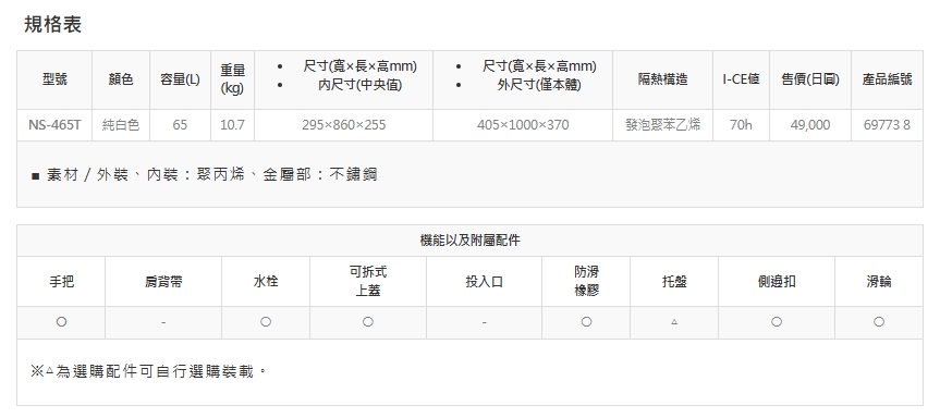 ■ 素材/外裝、內裝:聚丙烯、金屬部:不鏽鋼