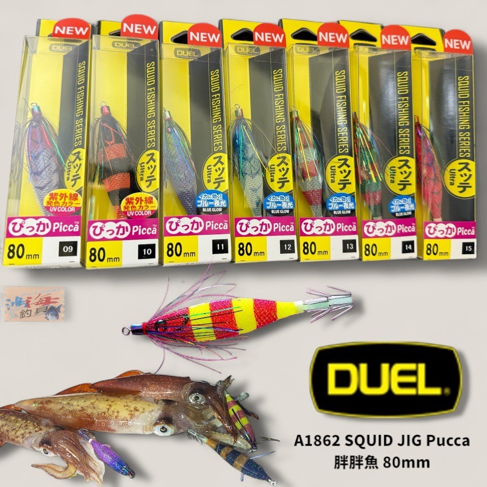 中壢鴻海釣具【DUEL】 A1862 SQUID JIG Picca 胖胖魚 80mm透抽布捲 (25年款)