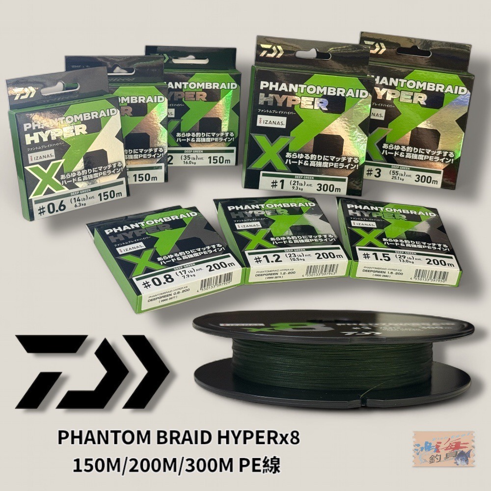 中壢鴻海釣具【DAIWA】釣線 PHANTOM BRAID HYPERx8 150M/200M/300M PE線