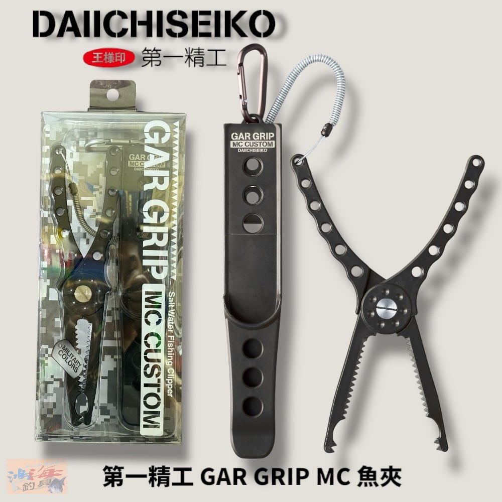 軍用色訂製款(MC CUSTOM)海釣釣魚鉗,採用高強度、不生鏽的GFRP材質(Glass Fiber Reinforced Plastic含量55%),和支撐厚薄皮帶、不容易脫落的R形吊鉤。