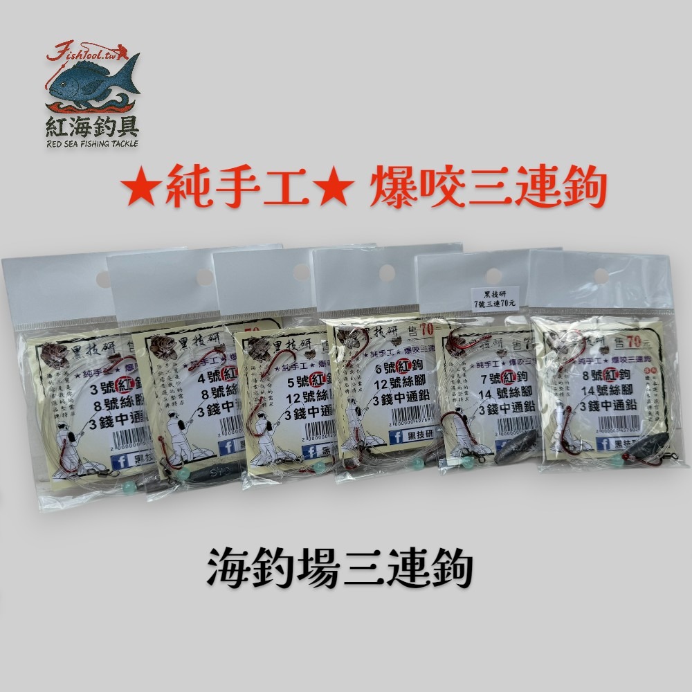 中壢紅海釣具【黑技研】 ★純手工★ 爆咬三連鉤 海釣場三連鉤