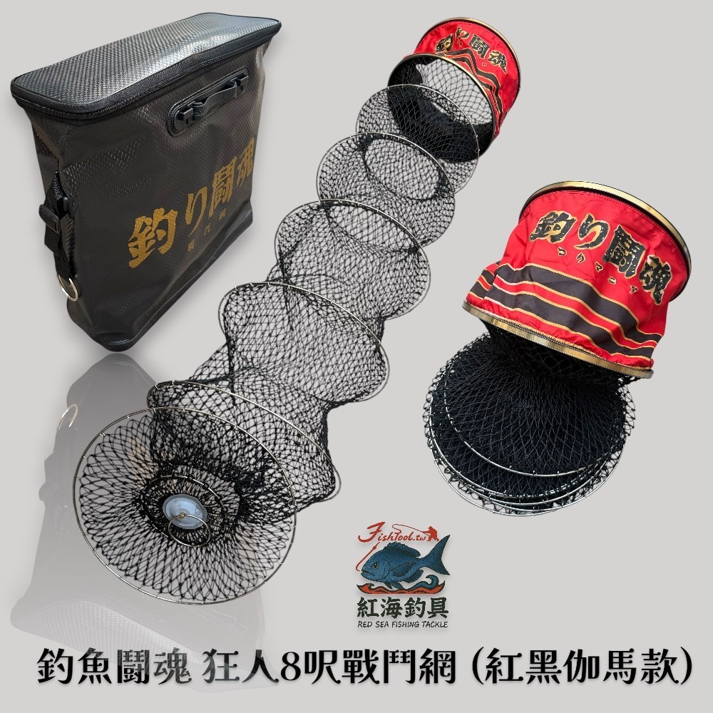 中壢紅海釣具【吉作】釣魚鬪魂 狂人8呎戰鬥網 (紅黑伽馬款)