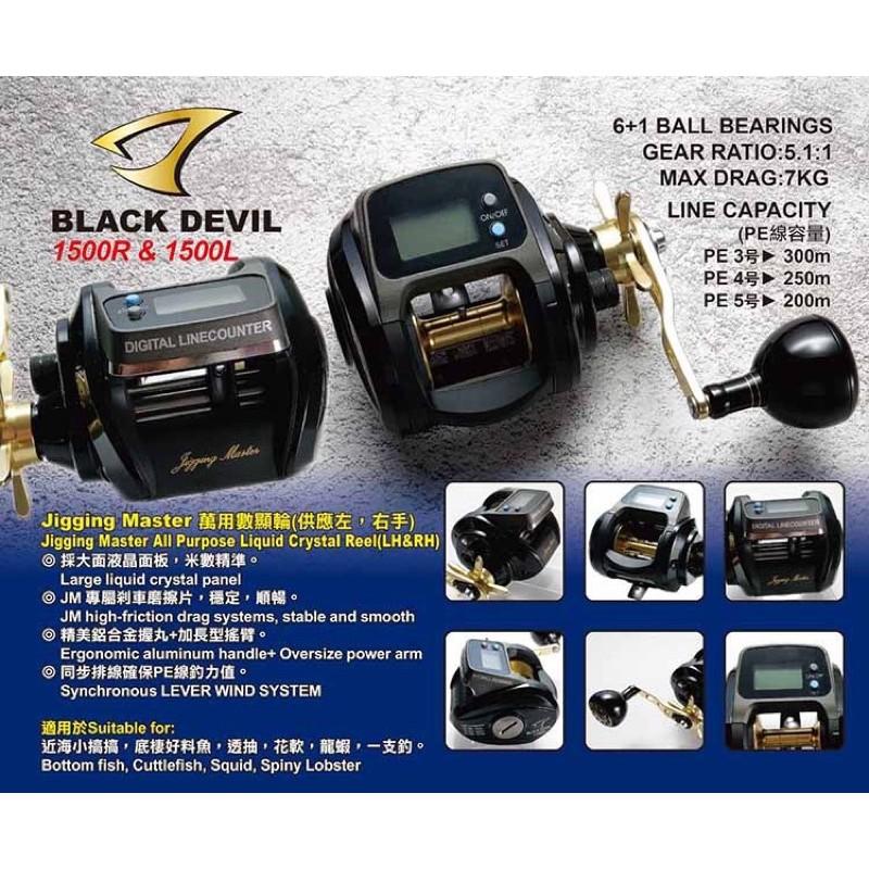 ◎百有釣具◎BLACK DEVIL 電子計米器 鼓式捲線器 /1500R右手~