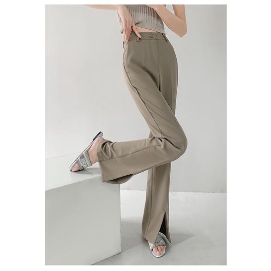 ʀᴏᴀɴɴᴀ_ᴋʀ歐美街頭垂墜感開叉西裝褲高腰修身顯瘦直筒休閒拖地褲白色落地褲神褲