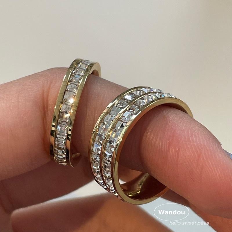 ʀᴏᴀɴɴᴀ_ᴋʀ爆閃🔥鈦鋼不掉色一圈滿鑽戒指單層雙層輕奢華派對食指戒