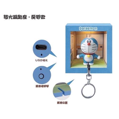 哆啦A夢 發光鑰匙座 房間款 LED感應燈 USB充電,哆啦A夢木頭公仔