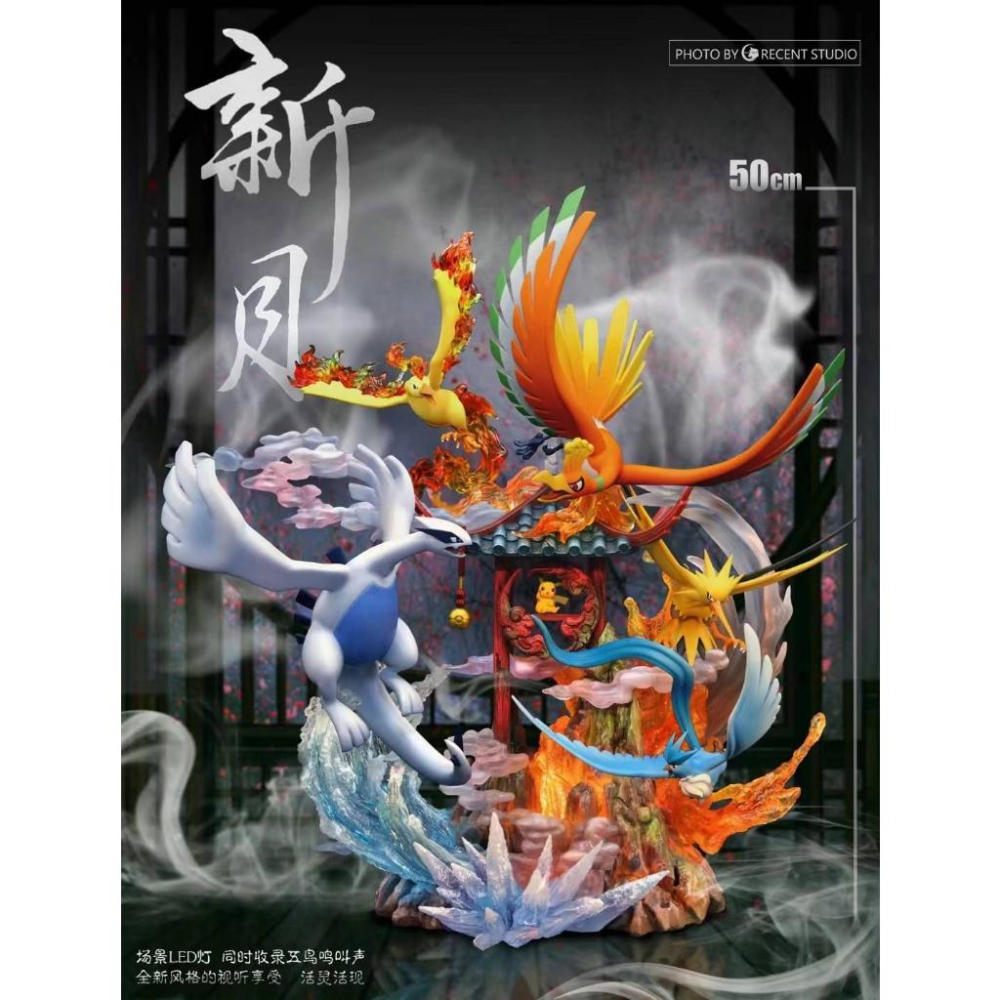 https://s-cf-tw.shopeesz.com/file/tw-11134208-7qul3-lj4y0zul7kn6d1 團隊:新月 Crescent-Studio 作品:新月 五鳥吟 尺寸:長47cm 寬33cm 高50cm 配置:自帶LED燈及五鳥鳴叫音效 體數:188體(18體工作室自留用於售後)。 預計出貨時間:2022年5月底。(依工作室實際出貨為主) 額外贈送特典:變皮洛奇亞 自首款三聖鳥之後,新月工作室收到國內和海外玩家的許多反響,期盼能夠出一款三聖鳥系列之作。 時隔一年,新月聯合設計師探討新推出(五鳥吟) 作為新月忠實粉的回饋,以全新風貌跳脫故事框架,追求意境之美,結合了中日設計文化風格,設計和塗裝再昇華並附帶贈品 (五鳥吟)寓意:山中獨亭,庭間山水環繞,山間五鳥共鳴,亭中的皮卡丘悠然自得的享受這祕境帶來的清新… 這將會是一款能讓人刻苦銘心的產品,期待它的問世! https://s-cf-tw.shopeesz.com/file/tw-11134208-7qul3-lj4y0zul8z7m30