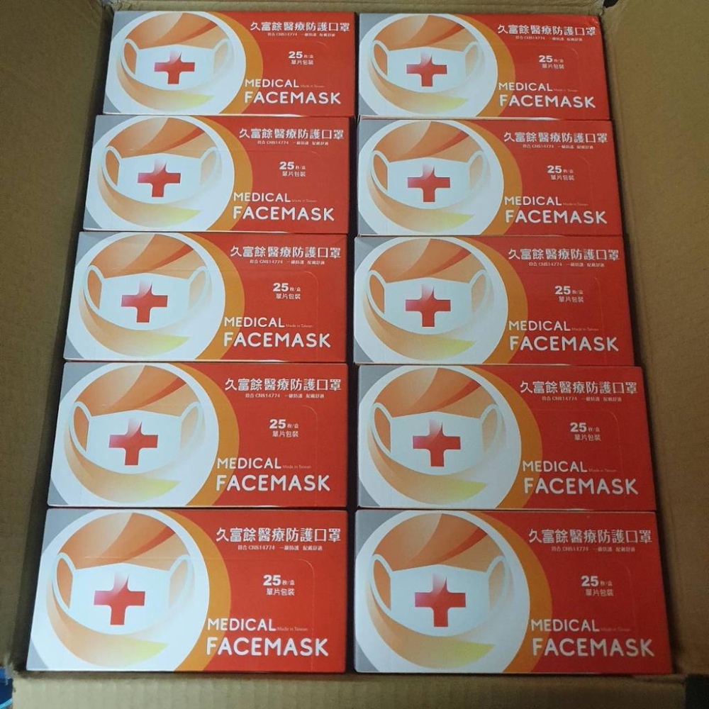 〝現貨〞 台灣製 久富餘 成人素色醫療口罩(一盒25片)
