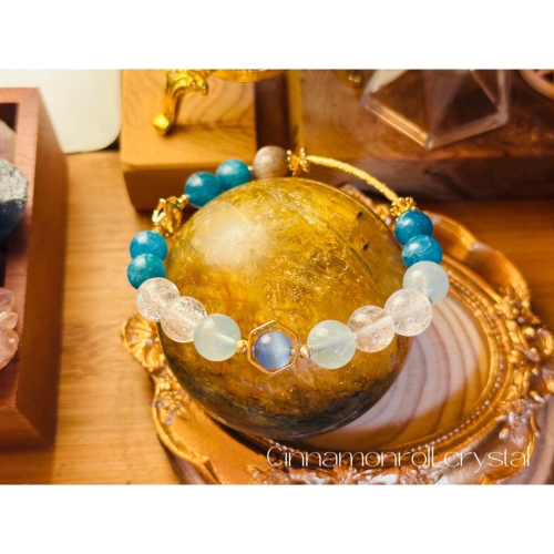 #水晶 #手作 #水晶手串 #設計款水晶手鍊 #藍貓眼 #海藍寶 #白阿塞 #黑金骨幹 #藍磷灰 #crystal #design