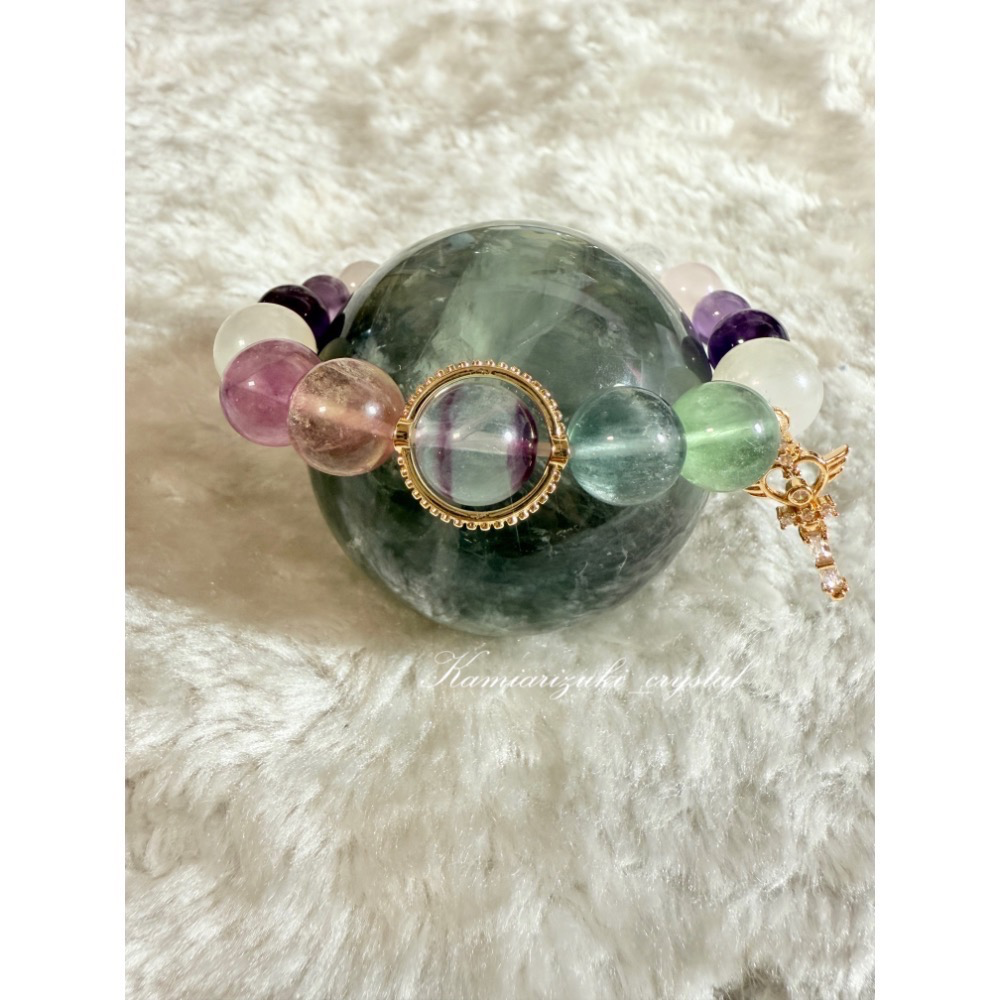 #水晶 #手作 #水晶手串 #設計款水晶手鍊 #獨角獸螢石 #白月光 #烏拉圭紫水晶 #薰衣草紫水晶 #西柚粉晶 #白水晶 #crystal #design