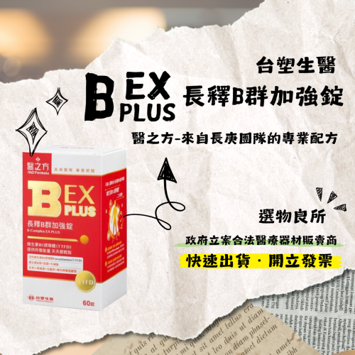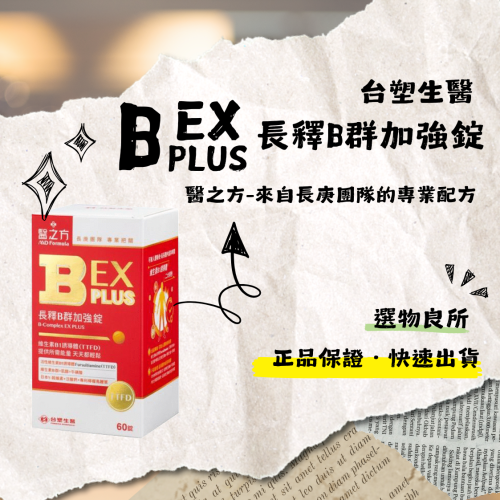 品 名:【台塑生醫】B群EX PLUS加強錠(60錠/瓶)